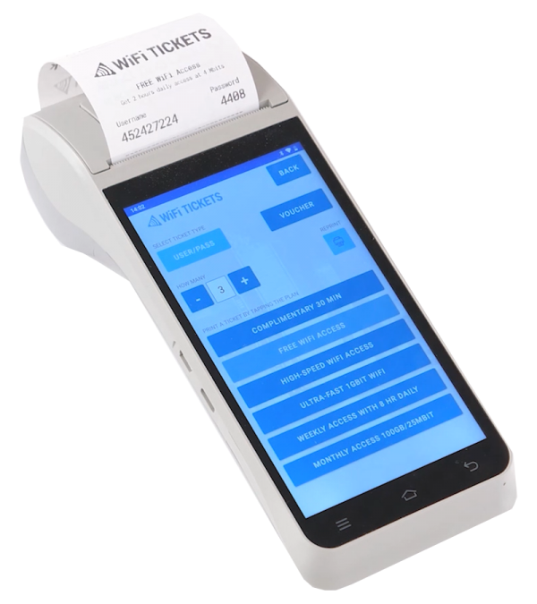 WiFi Tickets App helps you print tickets for your guests, visitors, and users to connect to your WiFi network.